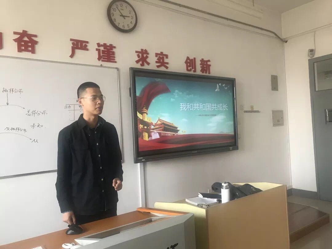 接下来,赵海鹏同学分享了自己的成长故事,他回首过去,深深感叹了祖国取得的伟大成就,并表示我国进入了新时代,伟大梦想需要伟大斗争来实践,作为新时代的大学生,我们要努力增强自身本领,为中国梦的实现增添自己的一份力量。