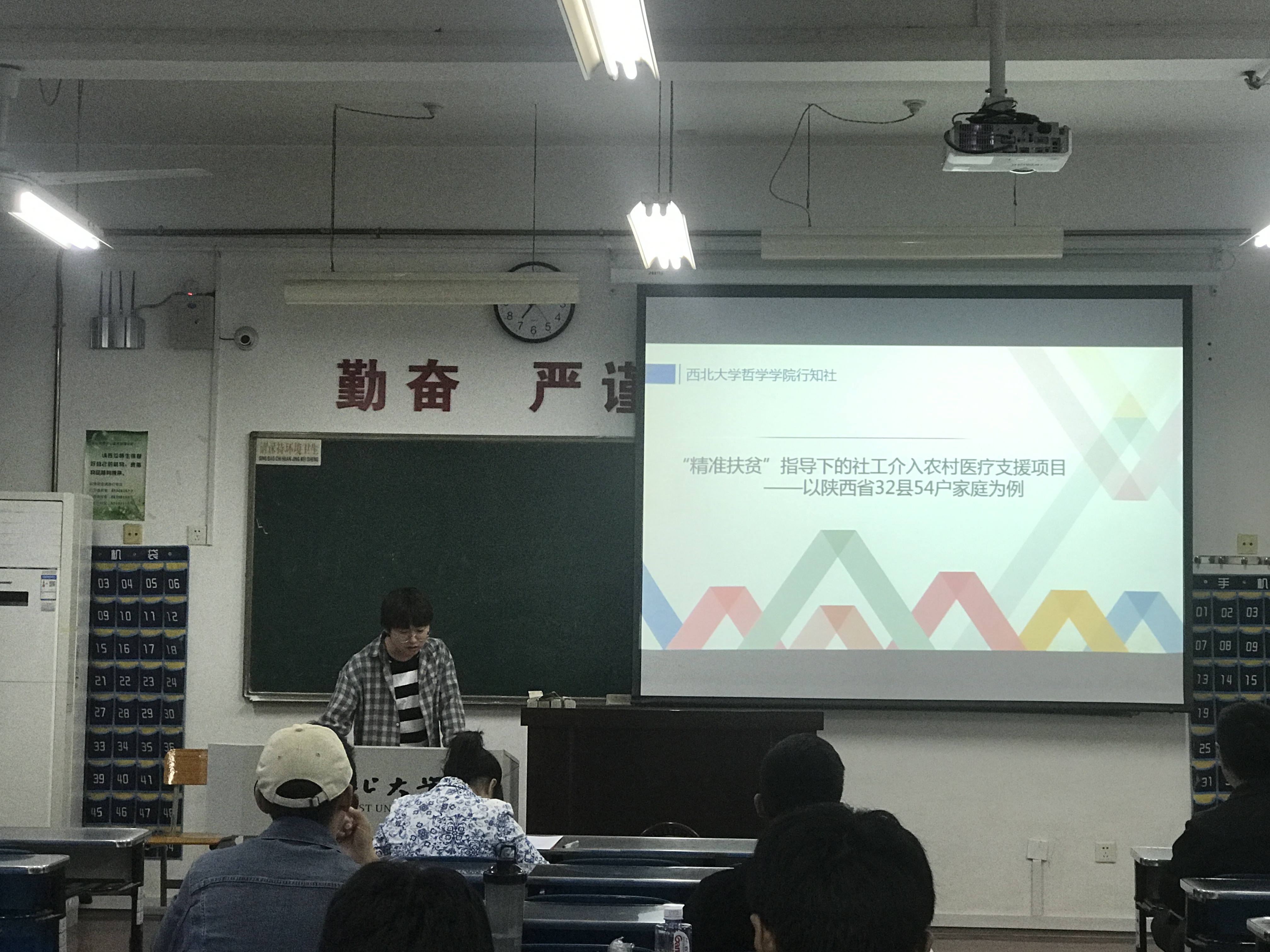 第一位进行分享的是行知社三下乡团队的负责人汪琪均同学,他们团队的主题是《“精准扶贫”指导下的社会工作介入农村医疗支援项目》。他就“术后儿童家访”项目的内容、实施方案、创新特色等进行分享,使同学们更加了解了项目的详情。