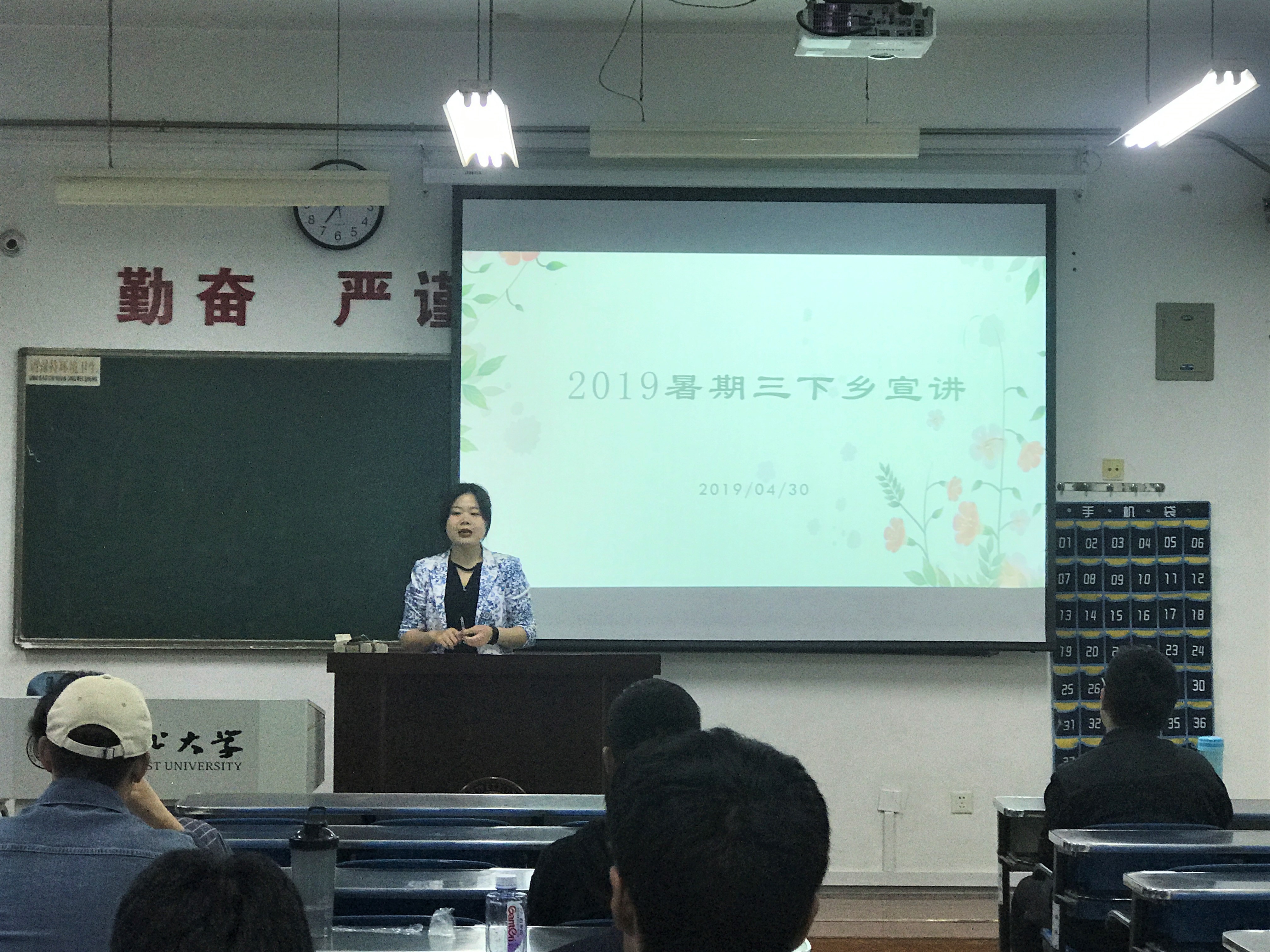 4月30日晚,我院团委于1207教室召开了2019年暑期三下乡宣讲动员会,院团委书记李鑫老师、院团委副书记吴嘉琦同学出席本次活动。本次宣讲会共邀请了2018年暑期三下乡的三个团队负责人分享经验。