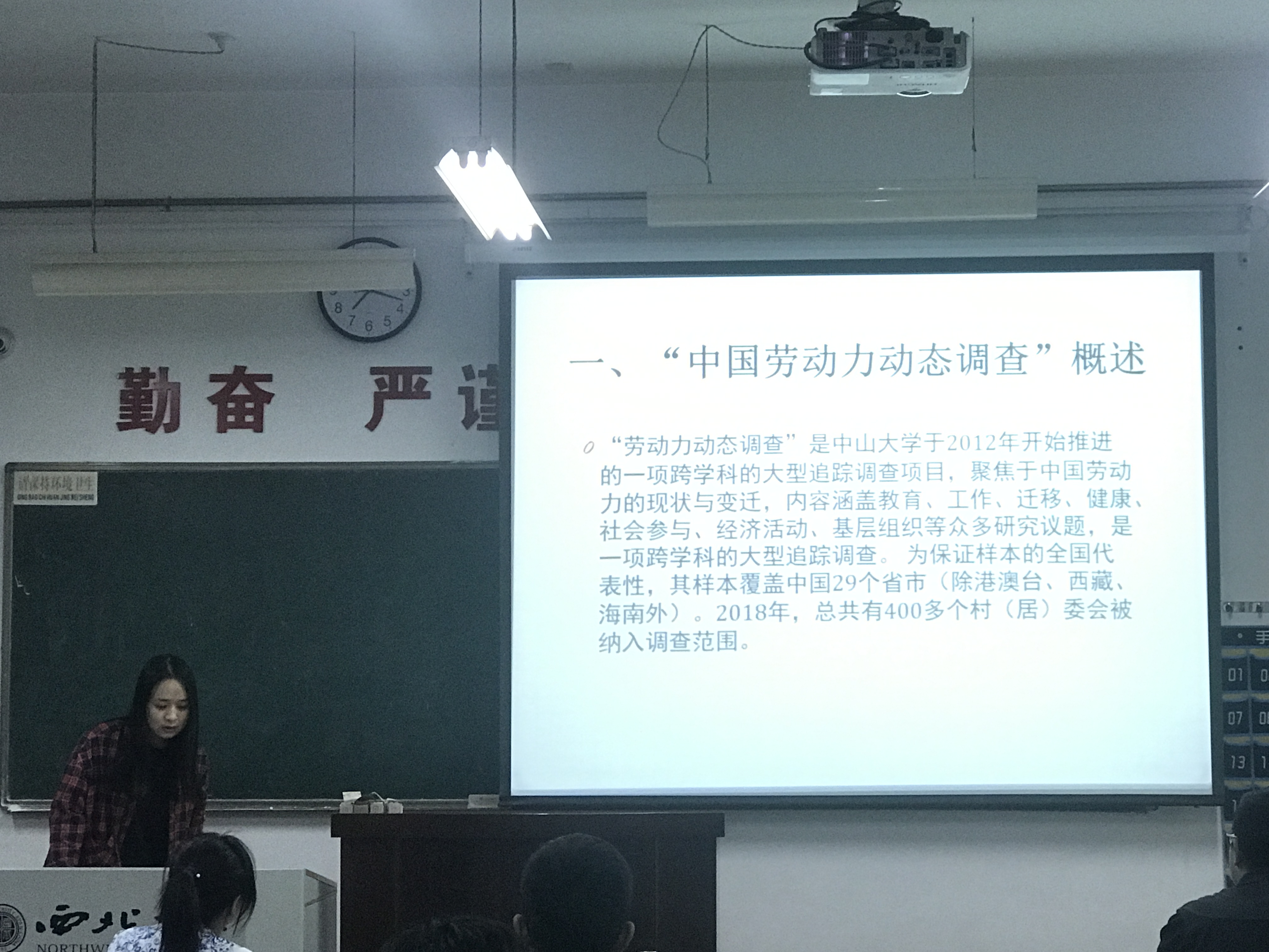 第二位进行分享的是研究生代表队的任婵娟同学,其所在的团队选题为《中国劳动力动态调查》。在分享中,任婵娟同学具体就如何开展调查、调查过程需要注意的事项以及问卷生成规则等方面进行了说明。