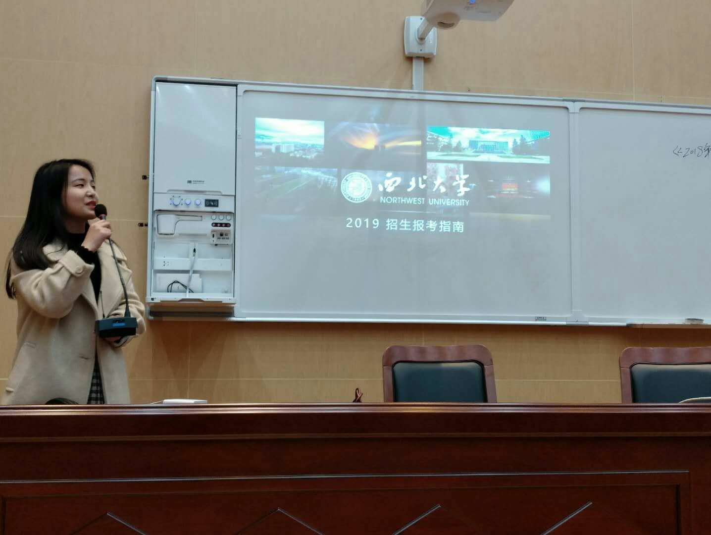 王雨欣同学负责主要的宣讲,她利用PPT首先向在场的高三学子们介绍了西安的基本情况,接着讲述了永利集团的百年历史、发展现状、学科优势、杰出校友、荣誉称号、科研成就、学生活动、社会实践以及基础设施等基本情况,在讲解完成后,她还播放了永利集团的招生宣传视频。