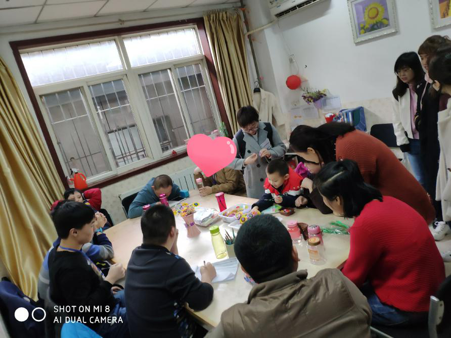 之后,同学们在机构学员的陪同下参观了慧灵的展示区和活动室,受到了机构学员和老师们的热情欢迎。而本次志愿服务的具体内容,则是同学们在活动室与机构的学员们进行积极、零距离互动,一同剪纸、做手工,切身感受陕西慧灵智障人士服务机构自由活跃的氛围,并为机构的学员们带来温暖与感动。