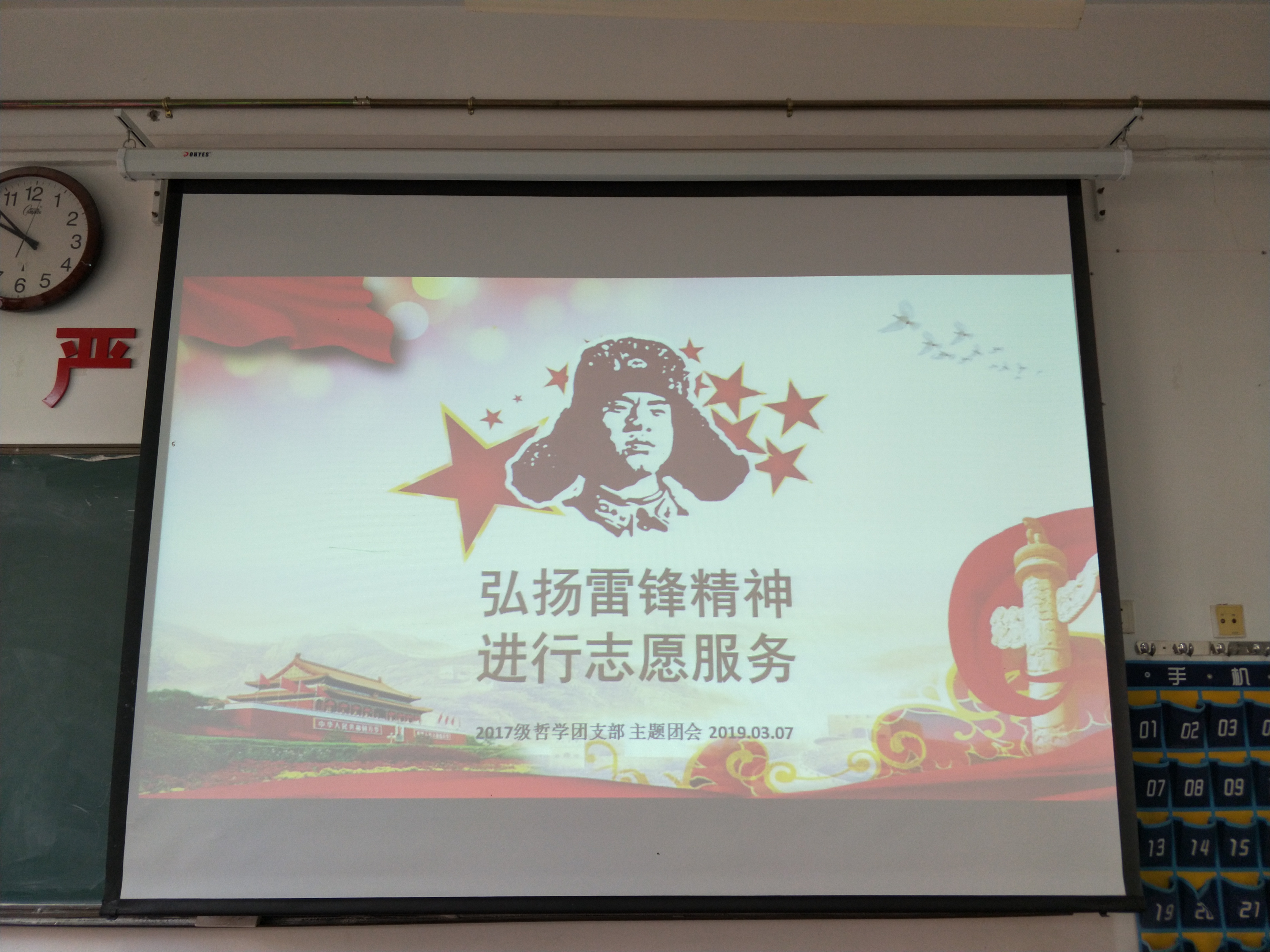 37日上午,本科2017级哲学团支部于1307教室召开了“弘扬雷锋精神,进行志愿服务”主题团会。会议由团支书盖丽娅同学主持,支部全体团员到场参与。