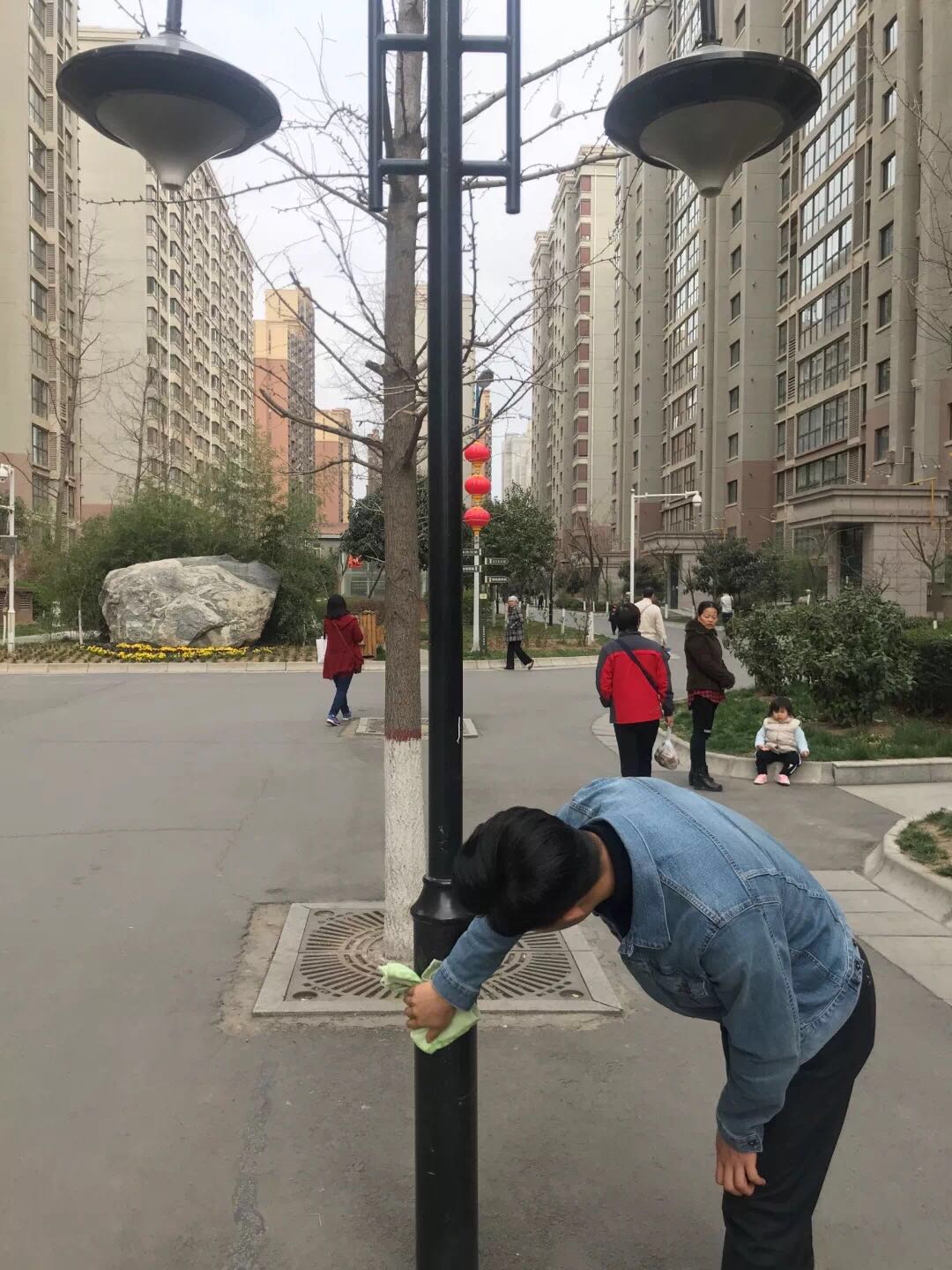 接下来,志愿者们对小区的公共设施进行了打扫。志愿者们人手一块抹布,仔细擦拭了小区的路灯、门牌等设施。看着志愿者们认真的劳动,路过的老爷爷老奶奶也竖起了大拇指。