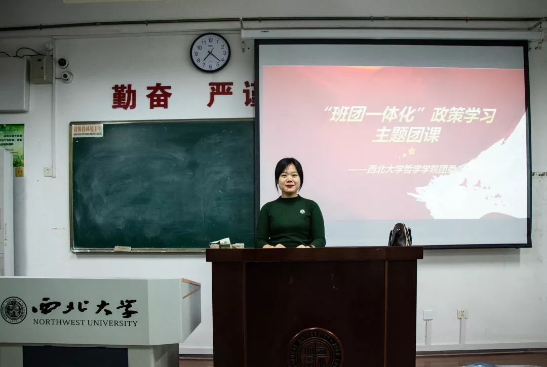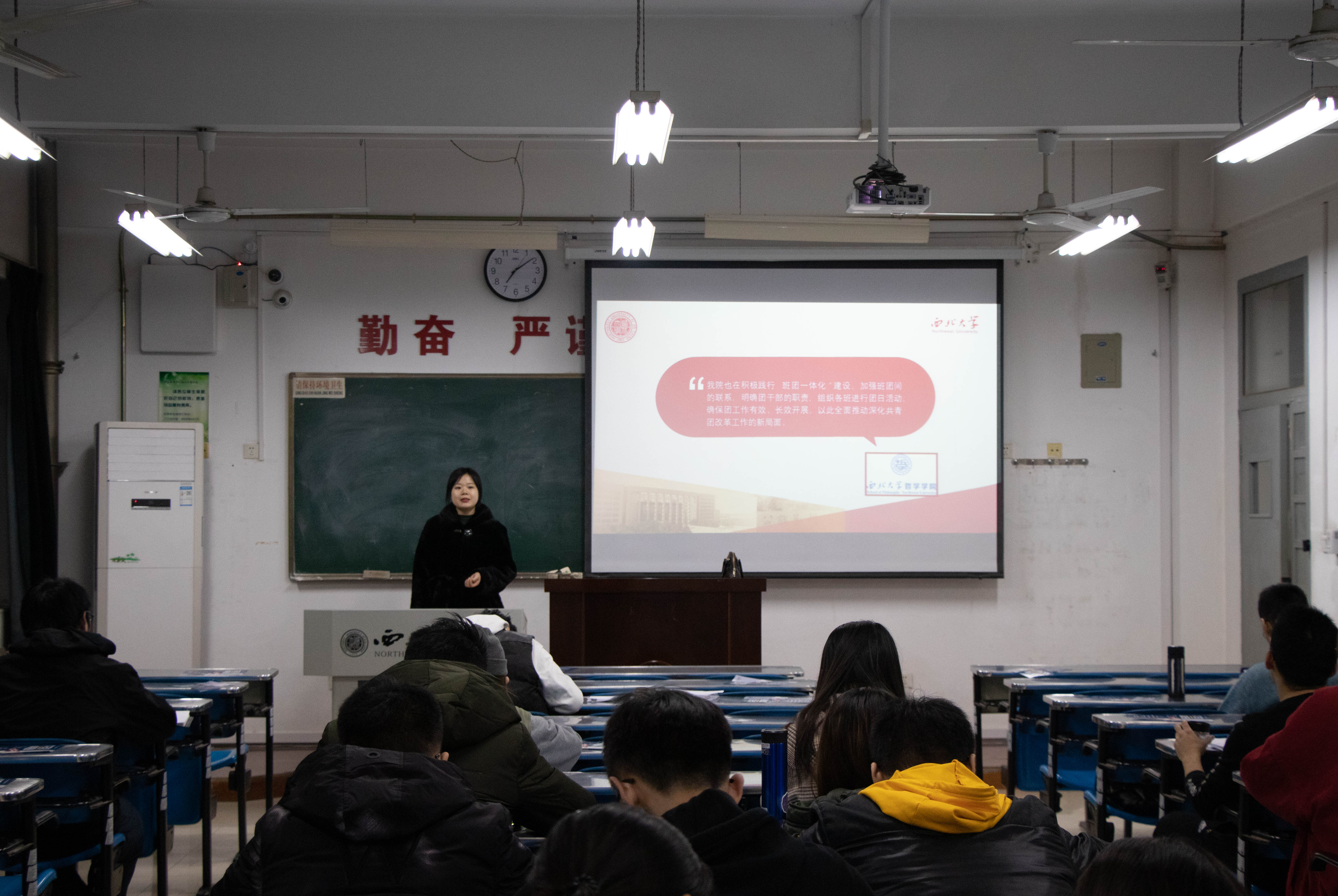 2019年12月17日晚,yl9193永利集团本科2018级哲学与社会工作团支部在1205教室召开了“班团一体化政策学习”主题团课,邀请到院团委书记李鑫老师为大家上团课。本次团课旨在促进团支部的凝聚力,引导同学们进一步深入了解“班团一体化”,积极投身“班团一体化建设”