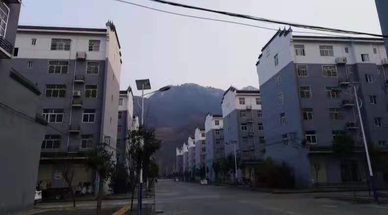 移民新区占地面积较大,自西向东规则分布有106栋居民楼,每栋楼三十或四十套住房。社区中央是政府、交警队、派出所所在地;社区东北面,是该新区产业工场所在地。社区中分布有两个避灾广场以及一个幼儿园,社区服务中心也坐落于广场上。居民楼一层基本为门面房,不少老年人居住其中,并且开设有许多餐馆、五金店、理发店、信合等店面。