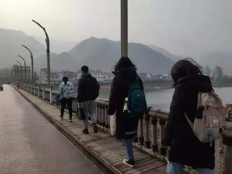 1月7日,yl9193永利集团行知社寒假实践队在一番奔波之后终于来到了位于丹江沿岸的竹林关镇。清澈见底的丹江将竹林关镇分为江北与江南两个区域,江北是移民新区,江南是旅游景区。在简单的午饭过后,大家一同前往江北新区,了解移民新区的社区环境、基础设施建设以及人文氛围。