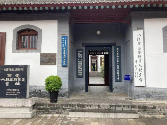 八路军西安办事处纪念馆位于西安市北新街七贤庄。1936年春夏之交,中国共产党在此设立了秘密交通站。“西安事变”和平解决后,秘密交通站改为半公开的红军联络处,后改为国民革命军第八路军驻陕办事处。党和军队的很多主要领导人多次在此工作、居住。白求恩、柯棣华等也在此居住过。抗日战争期间,八路军办事处展开统一战线工作,输送大量的进步青年赴延安,为陕甘宁边区和前方采购、转运物资,是抗日战争的一座坚强堡垒和“红色桥梁”。