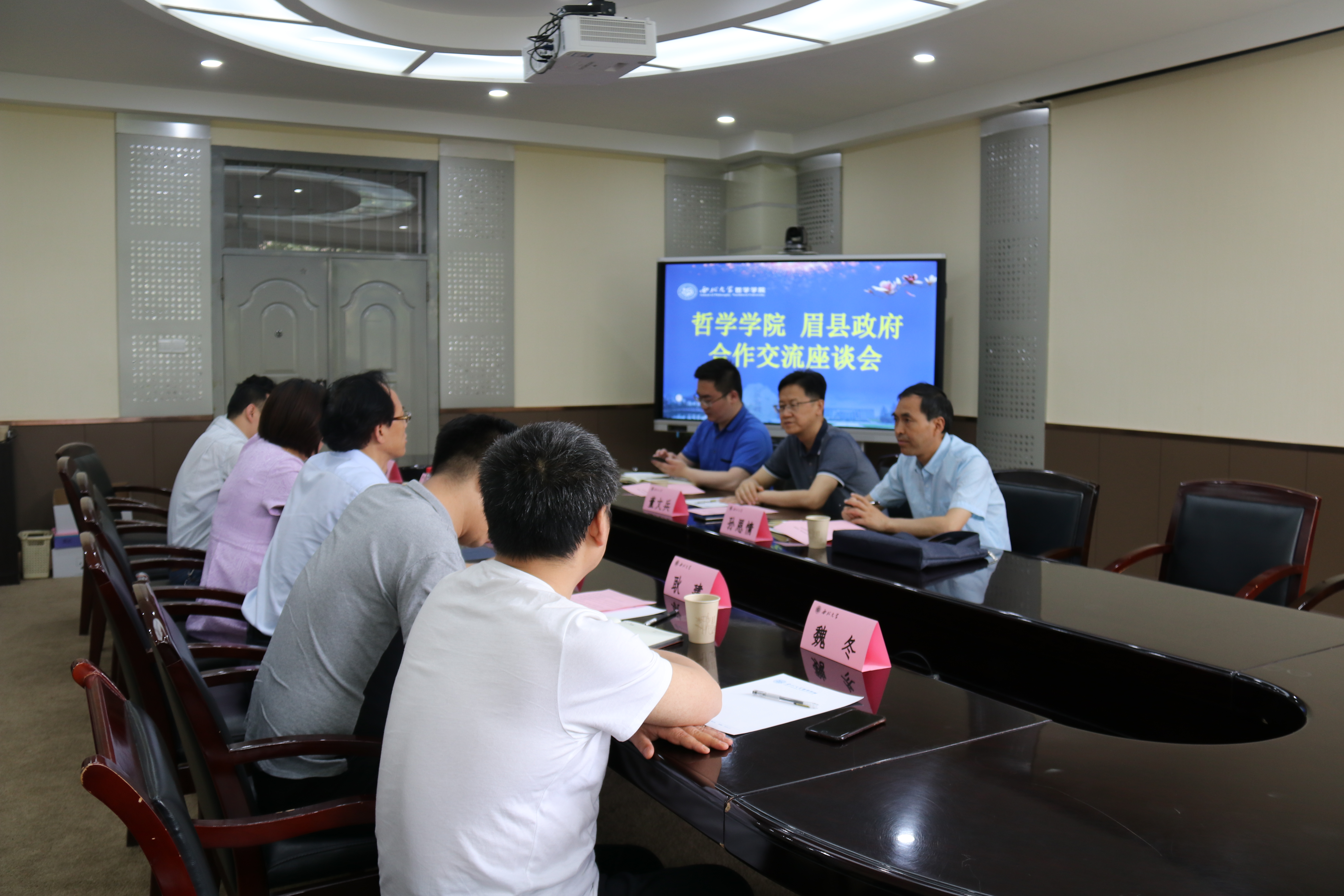 张学广院长代表我院介绍了我院的师资力量、本科生及研究生的基本情况;眉县来访领导介绍了眉县的经济状况,文化、旅游事业以及县校联合办学思路,并对张载与眉县的历史渊源关系、张载文化产业规划发展情况做出了详细的说明。