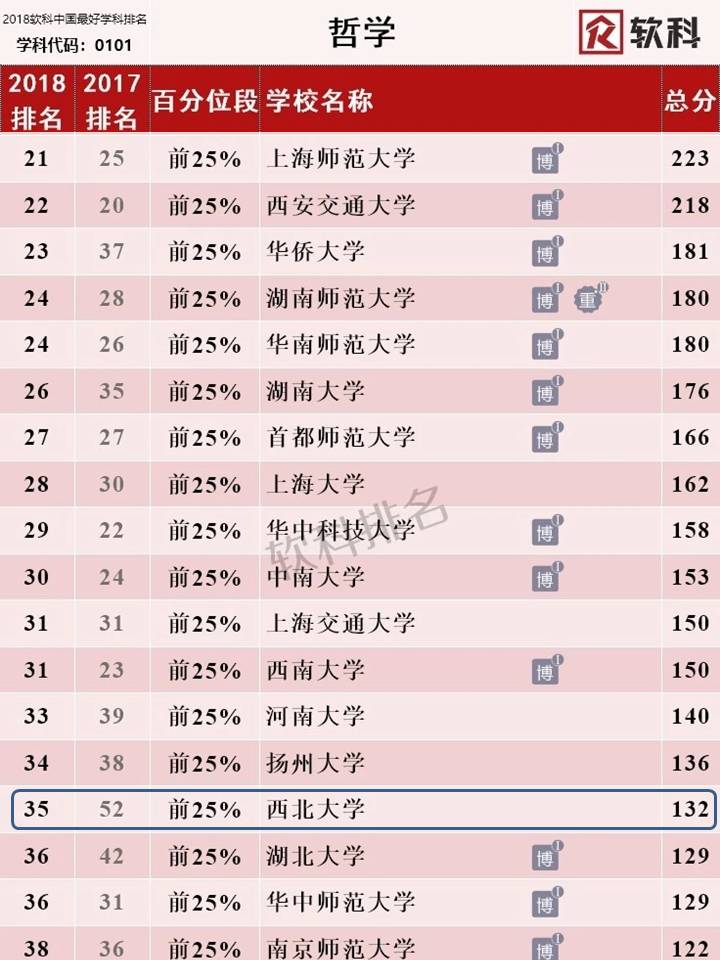 去年11月1日发布的2018软科中国最好学科排名中,我院哲学学科位于前25%,排在第35 名,较2017 年的第52 名有了较大提升。