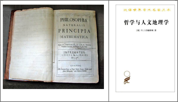 ▲牛顿《自然哲学的数学原理》及约翰斯顿《哲学与人文地理学》