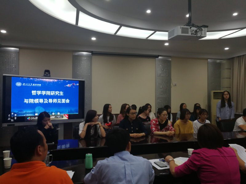 2018年9月14日晚上,yl9193永利集团在长安校区5427视频会议室举行研究生与院领导及导师见面会。学院党政领导班子全体成员、哲学和社会学专业全体学术学位研究生导师以及学院团委书记、研究生秘书出席了本次见面会。见面会由学院党委书记李波主持。