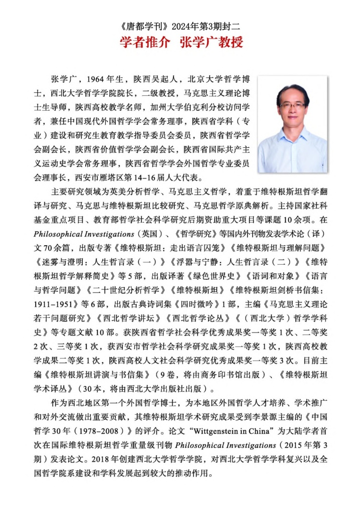 《唐都学刊》2024年第3期封面二、《江西社会科学》2024年第9期封面二专版发布学者推介,重点推介我院院长张学广教授。