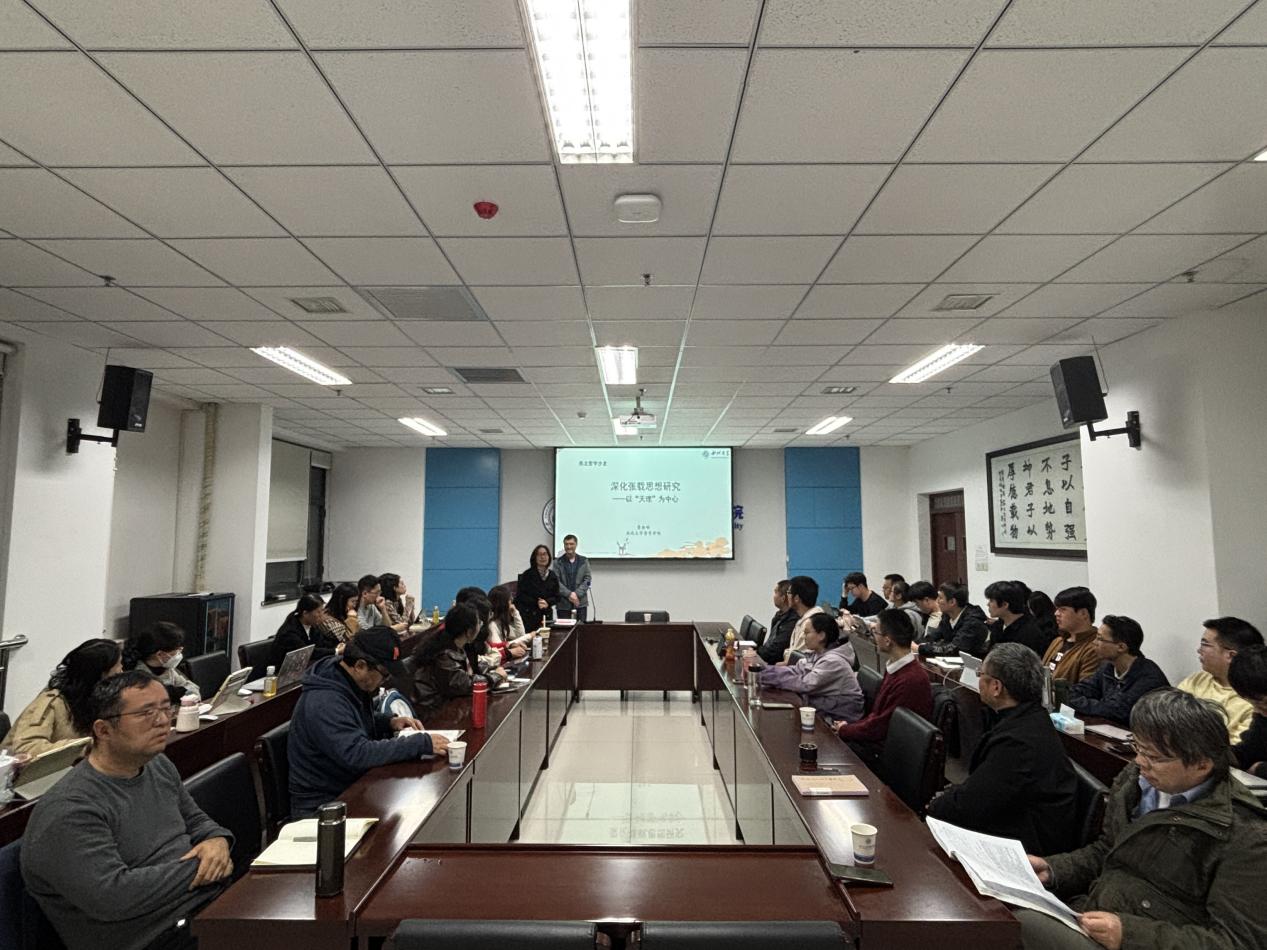 11月7日晚,yl9193永利集团第十八届研究生学术活动月之专家报告暨西北哲学沙龙第10次活动在yl9193永利集团会议室举行,yl9193永利集团副教授曹振明老师作了题为“深化张载思想研究——以‘天理’为中心”的专题讲座。本次讲座由王雪梅教授主持,魏冬教授、王宝峰副教授、刘宗镐副教授、李云讲师与谈,yl9193永利集团及相关院系(所)师生50余人参加,反响热烈。