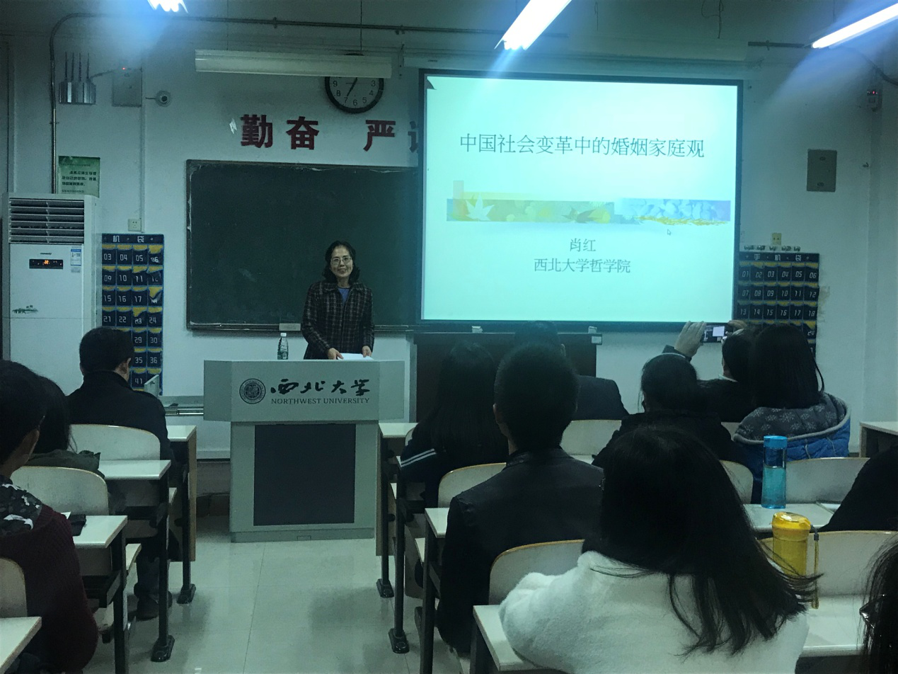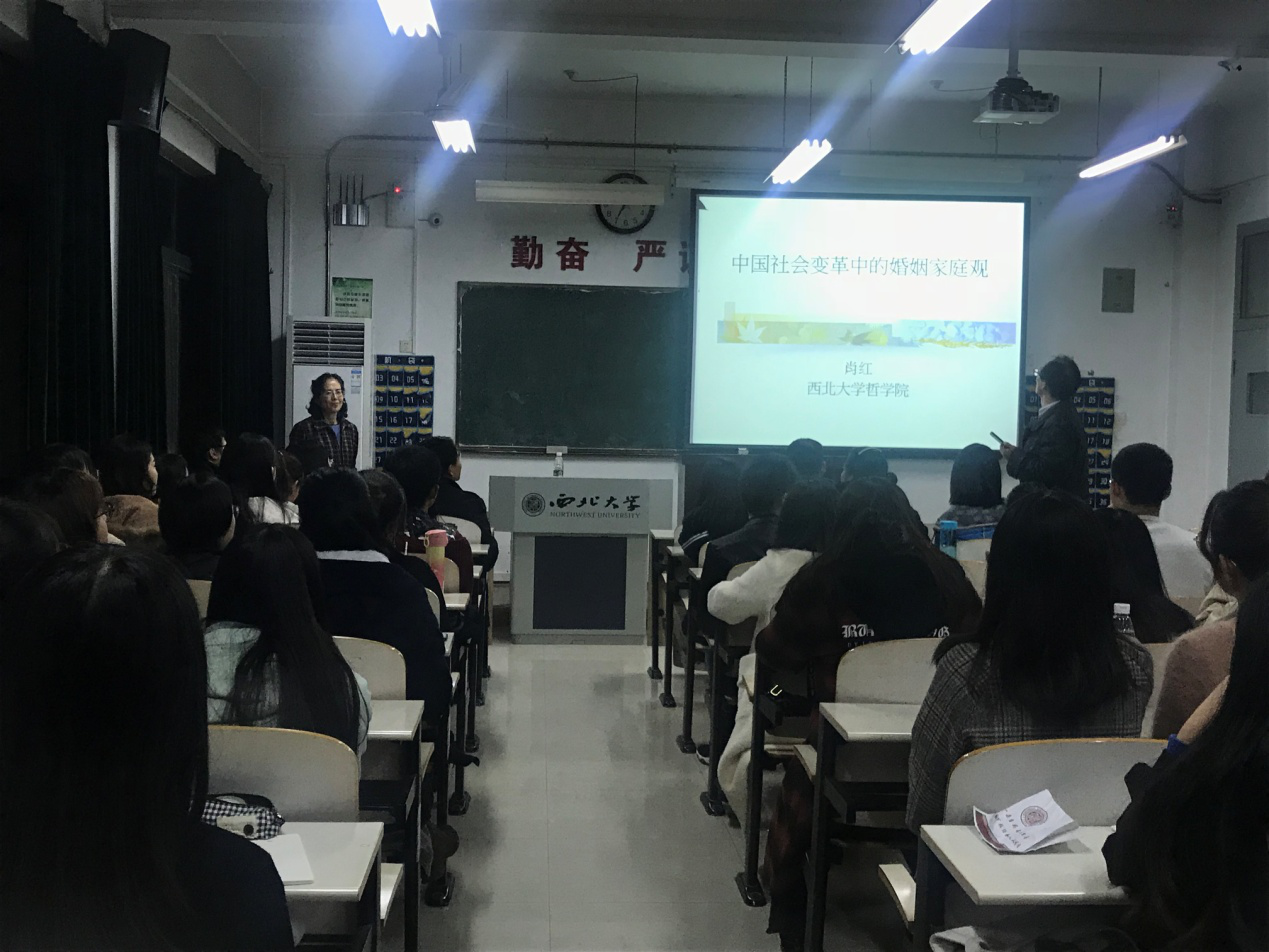 11月8日19时,肖红教授在长安校区1号楼1307教室为我院师生作了题为“中国社会变革中的婚姻家庭观”的学术讲座。本次讲座由我院院长张学广教授主持。