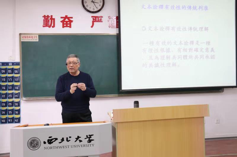 在讲座的开始,傅永军教授首先对于文本及诠释的有效性做出了概念上的界定。他认为,文本不仅仅指任何由文本所固定的话语,亦可以指事件、行为、信仰及各类社会性的存在。同时文本诠释的有效性致力完成在理性认证基础上的可公度性的诠释。解决的不是“理解得以发生的条件”是什么的问题,而是“共识性理解”何以可能的问题。而对于问题的解决,傅永军教授提出了两个角度,即明确文本诠释的有效性判断,以及有效的文本诠释实现条件或路径。教授对于文本诠释有效性的传统与现代判断做出比较,并深入地探讨了关于传统与现代理解的具体内容。对于文本诠释的传统判断,傅永军教授认为,真实性与合理性是传统判断的两点具体要求,即“具有相对确定的意义内涵”与“为理解共同体认可和接受”。但在传统视域下,合理性可以得到满足,而真实性却难以得到满足。传统判断面临着失效的危险。在研究中,教授以罗尔斯有关公共理性有效使用的“相互性判断”为蓝本,确立了文本诠释有效性的新的标准,并进一步阐释出这种新标准的多重优势。