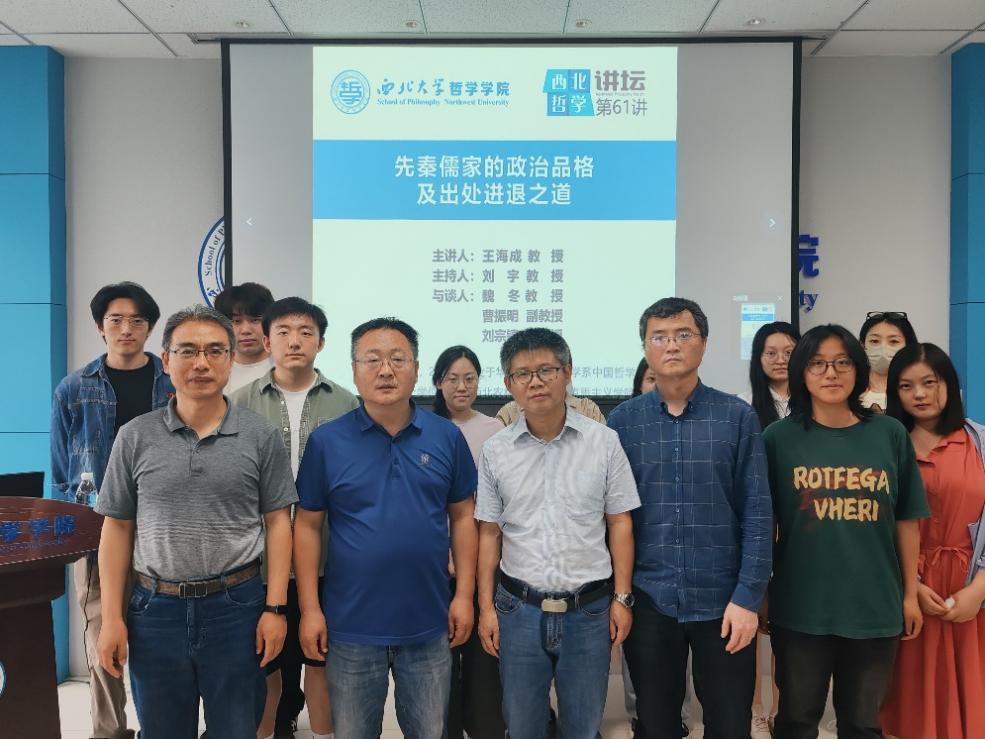 5月16日下午,西北农林科技大学马克思主义学院教授王海成做客“西北哲学讲坛”第61讲,在长安校区西学楼北304yl9193永利集团会议室作了题为“先秦儒家的政治品格及出路进退之道”的专题讲座。本次讲座由刘宇教授主持,魏冬教授、曹振明副教授、刘宗镐副教授与谈,yl9193永利集团师生30余人参加。