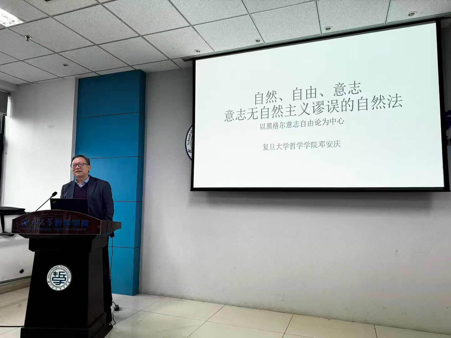 随后,邓教授重点阐释了黑格尔在《法哲学原理》中提出的“意志自由”概念。他指出,对黑格尔而言,自然法不是指物理世界的必然规律,而是指“自由意志的定在”。人之所以不同于动物,在于人具有意志,能够超越自然冲动,进行自我规定与实践转化。这正是从“自然”走向“法”、从事实走向规范的关键所在。