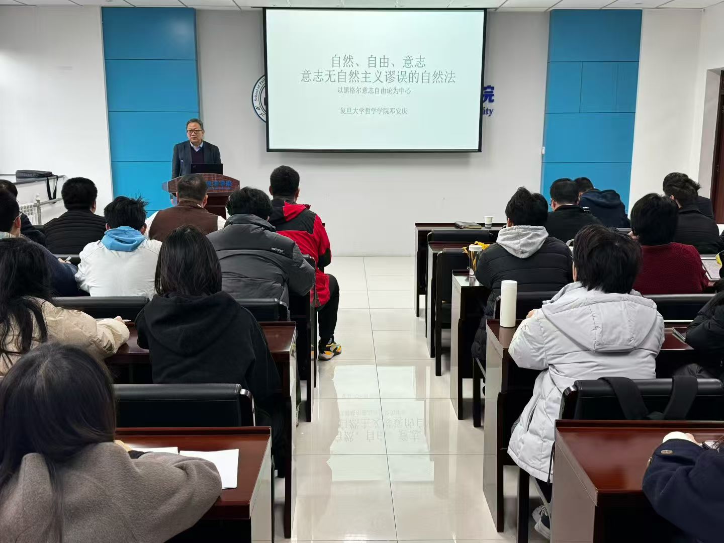 11月17日上午,复旦大学特聘教授,中国伦理学会副会长邓安庆教授受邀做客“侯外庐学术讲座”第四百七十二讲,开展了一场题为“自然、意志与自由:论一种没有自然主义谬误的自然法”的专题讲座。本次讲座由yl9193永利集团院长张学广教授主持,yl9193永利集团副院长胡军良教授进行与谈,yl9193永利集团50余名师生参与。
